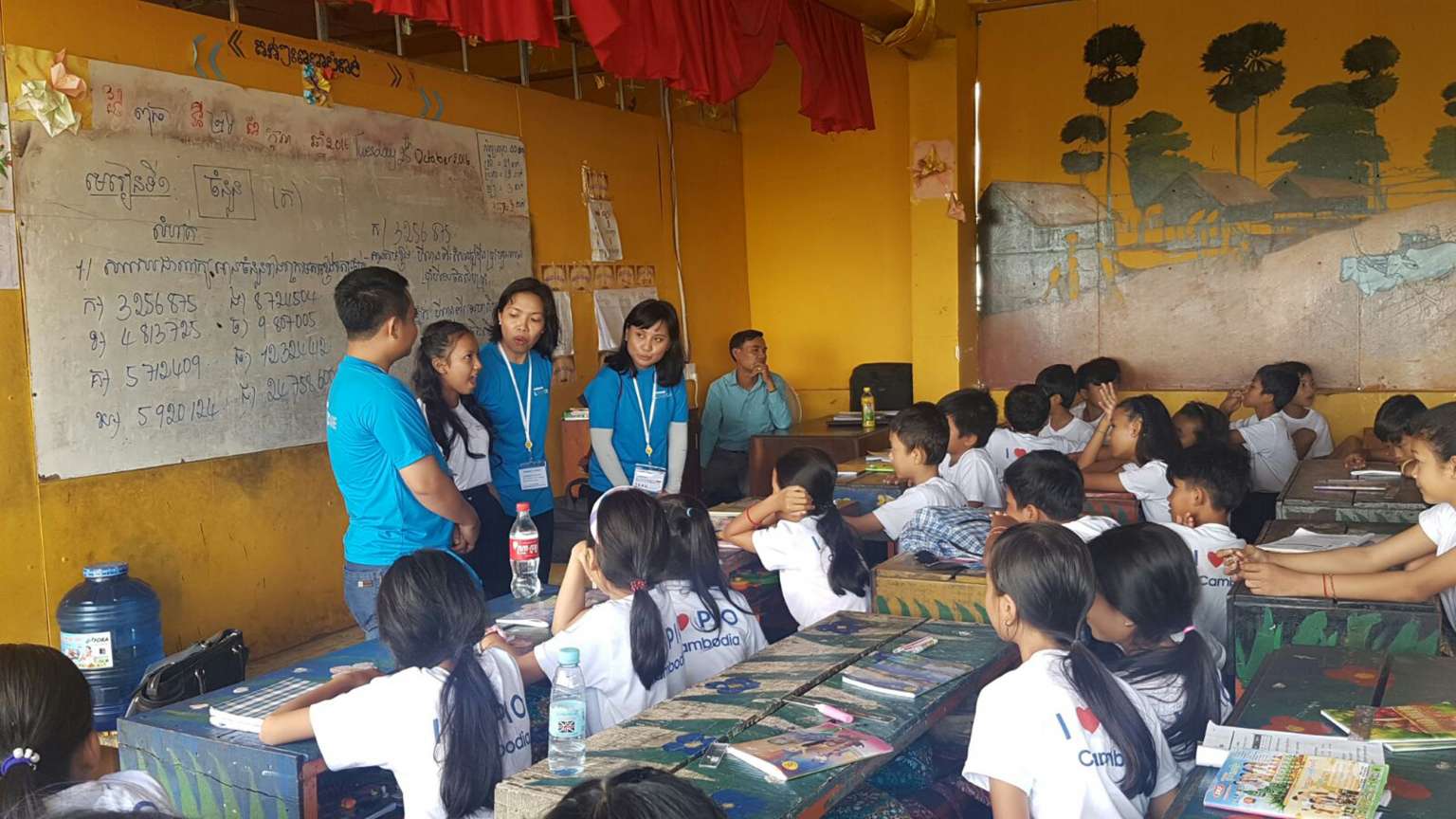 Samsung employees participating in a classroom activity for Samsung Love and Care Programme in Cambodia.