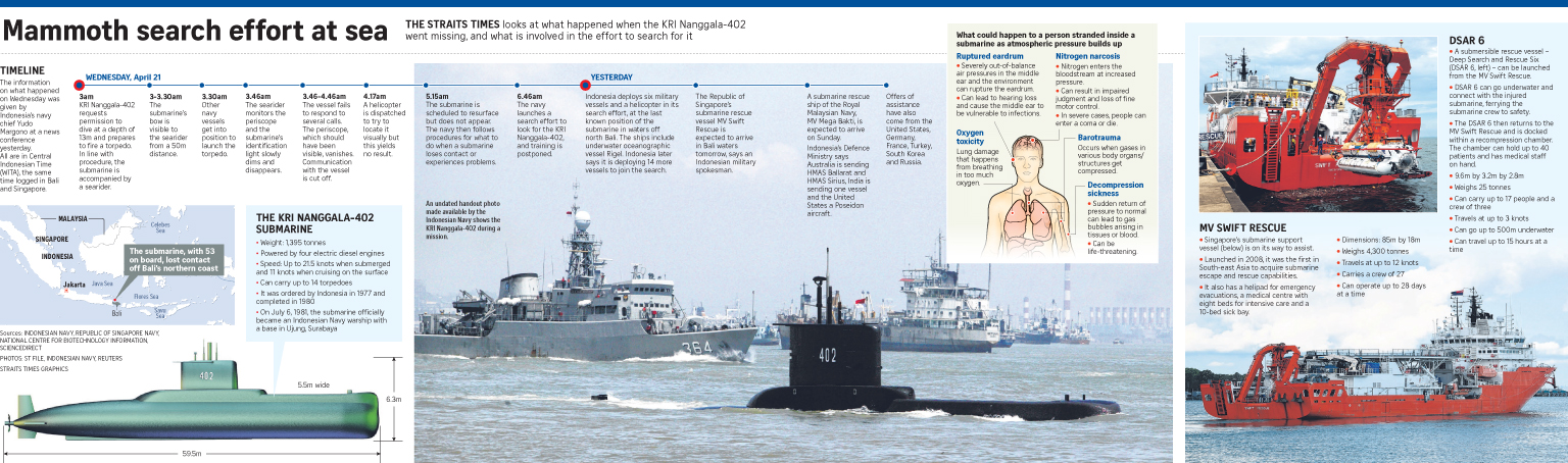 The missing submarine, the KRI Nanggala-402, was to carry out a torpedo-firing drill after it asked for permission to dive early on Wednesday, but contact was lost and it became unreachable.