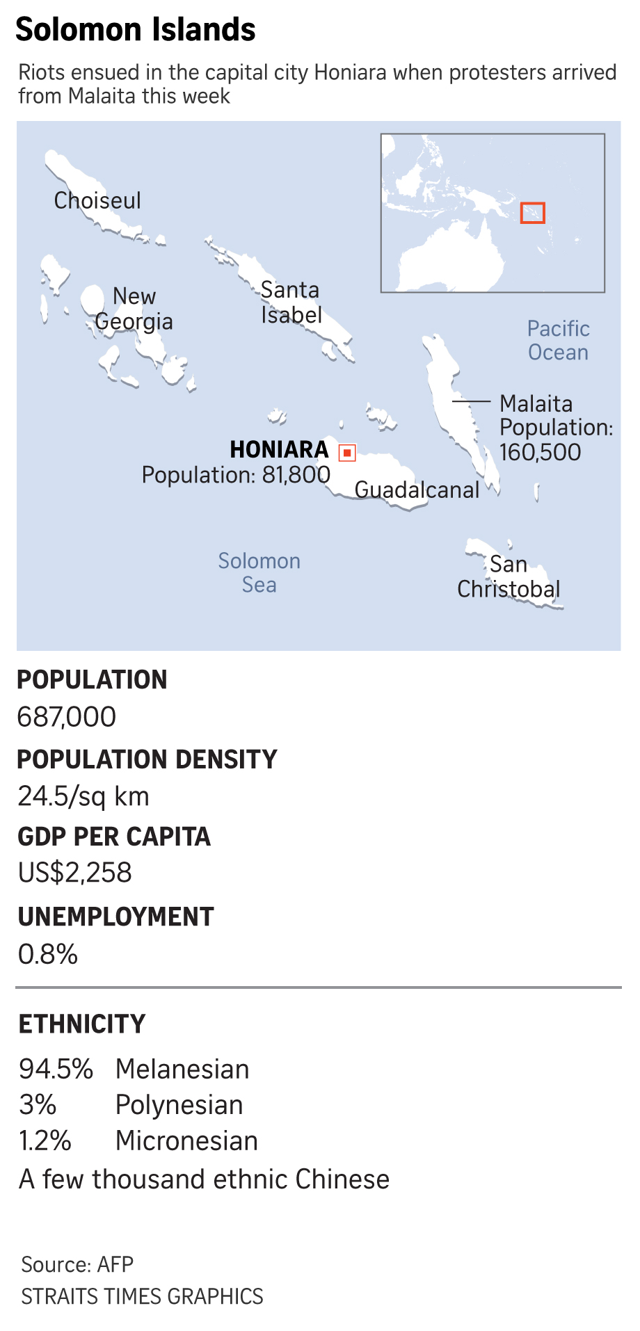 HONIARA (REUTERS, AFP, BLOOMBERG) - Australian police began taking control of the Solomon Islands capital Honiara on Friday (Nov 26) after days of violent protests in the South Pacific island nation, witnesses said.