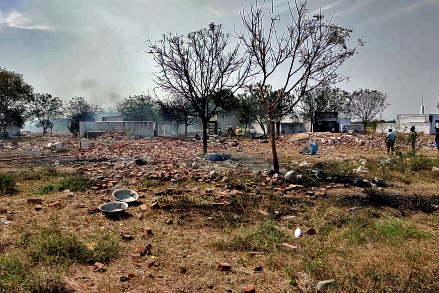 View of the firecracker factory following an explosion at the site in Virudhunagar district in Tamil Nadu on Feb 12, 2021.