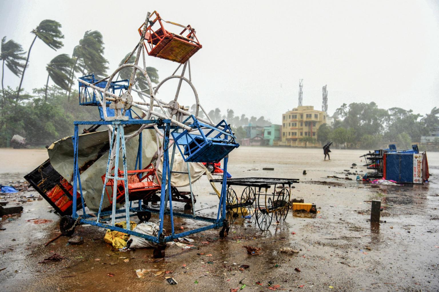A damaged ferris wheel at the beach in Alibag town, following cyclone Nisarga's landfall in India's western coast.