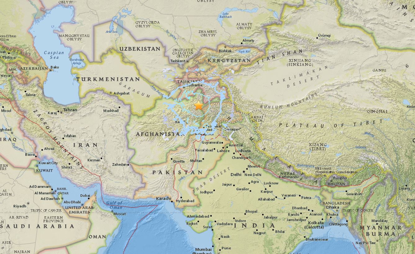 The quake hit near Afghanistan's northern border with Tajikistan in the Hindu Kush mountains at a depth of 191km.