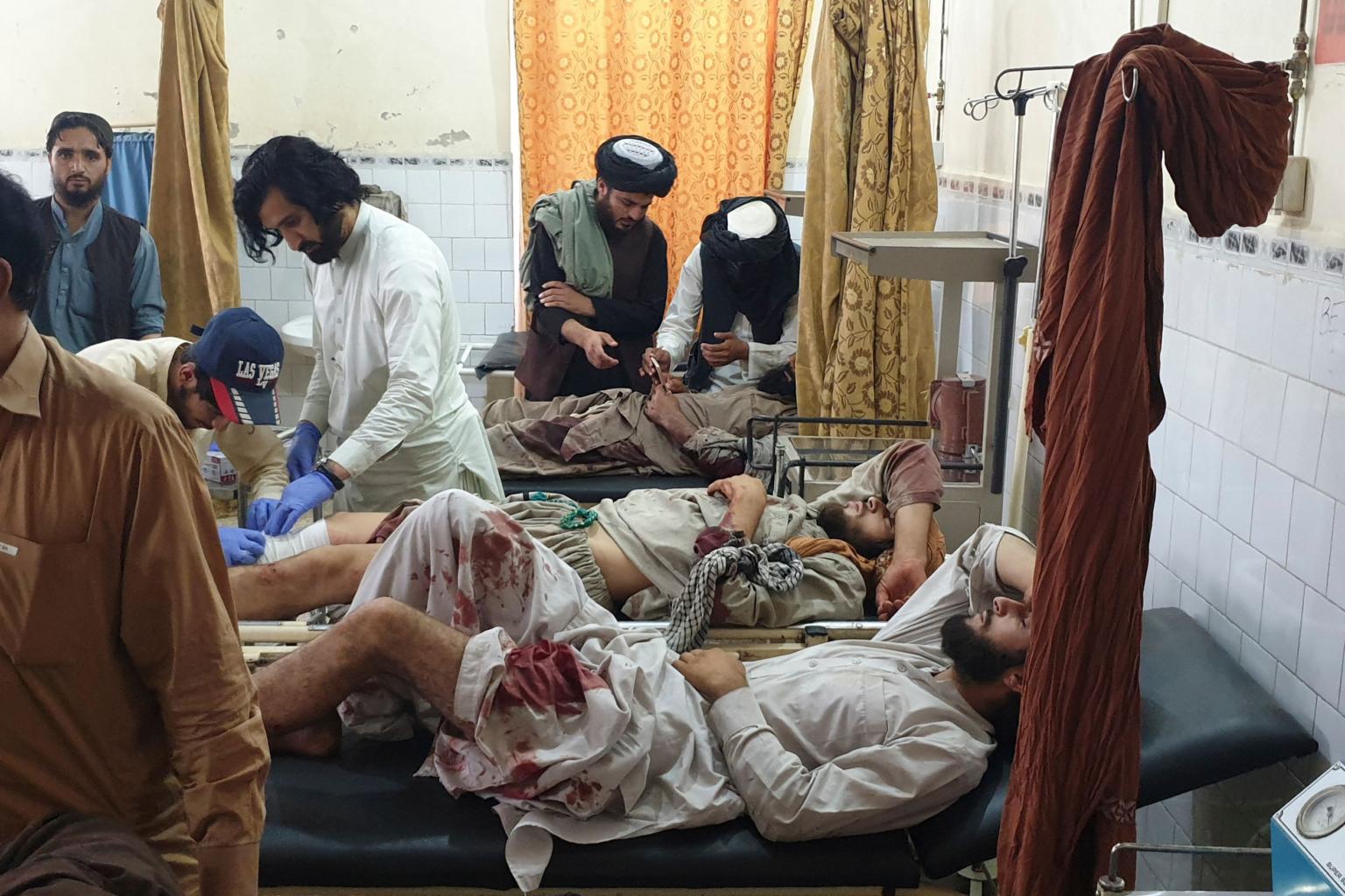 Paramedics treat men injured in Chaman, a Pakistani town in the border with Afghanistan, on July 16, 2021.