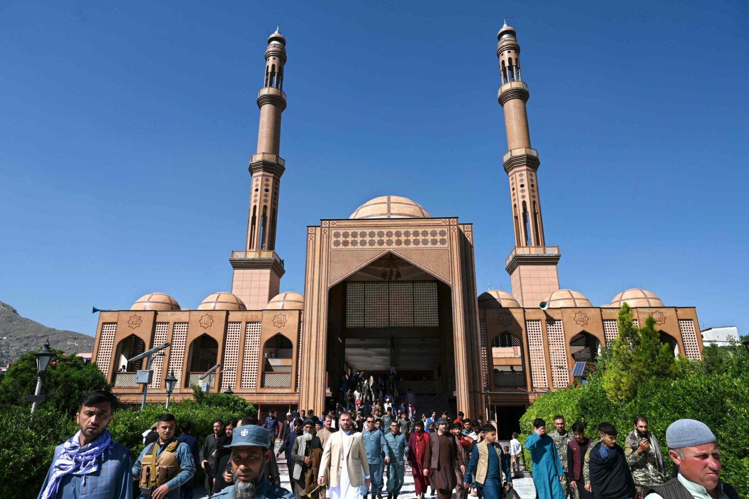 Muslim devotees leaving the Abdul Rahman Mosque after offering prayers at the Eid al-Fitr festival in Kabul, on Thursday.