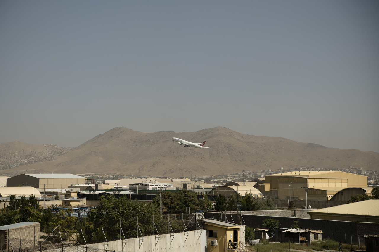 A plane leaving the Hamid Karzai International Airport in Kabul on Aug 15, 2021.