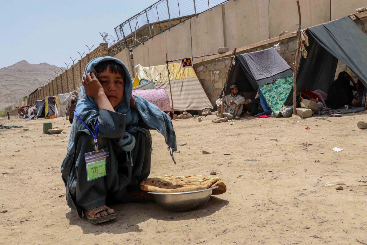 <p>epa09394232 Families displaced from districts where fighting is going on between Afghan security forces and the Taliban, wait for relief as they live in temporary shelters in Kandahar, Afghanistan, 04 August 2021. Heavy fighting continued in Kandahar, Lashkargah, and Herat cities as the Taliban continued pressing on with their surge in Afghanistan and breaking through a tough resistance by the government forces. The fighting in Herat displaced hundreds of families as people left their houses to seek refuge in central parts of the city, mostly settling with relatives. EPA-EFE/M. SADIQ</p>