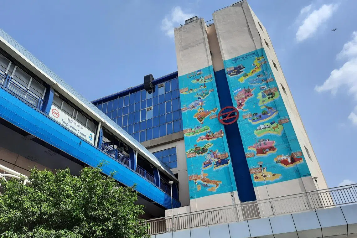 A mural welcoming delegates from G-20 countries at the Supreme Court metro station in Delhi. The city has undergone an extensive makeover ahead of the summit, but this has badly hit street vendors and slum dwellers.