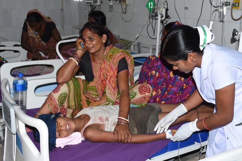 A child receives medical treatment due to Acute Encephalitis Syndrome (AES) in a hospital in Muzaffarpur, India, on June 10, 2019.