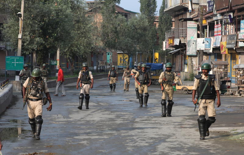 Thousands of paramilitary police have been deployed in Srinagar, schools shut and roads and neighbourhoods barricaded.