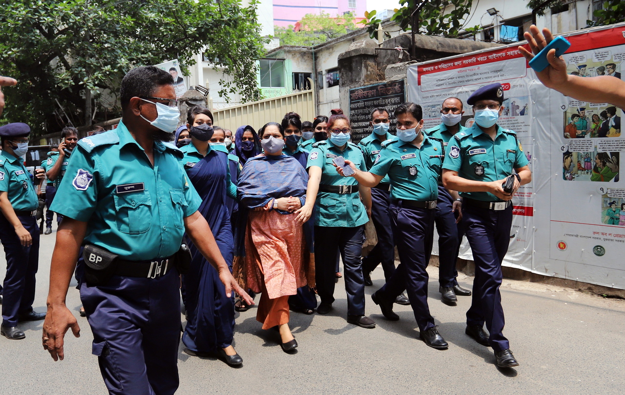 Police escort journalist Rozina Islam to the Dhaka Metropolitan Magistrature court in Bangladesh on May 18, 2021.
