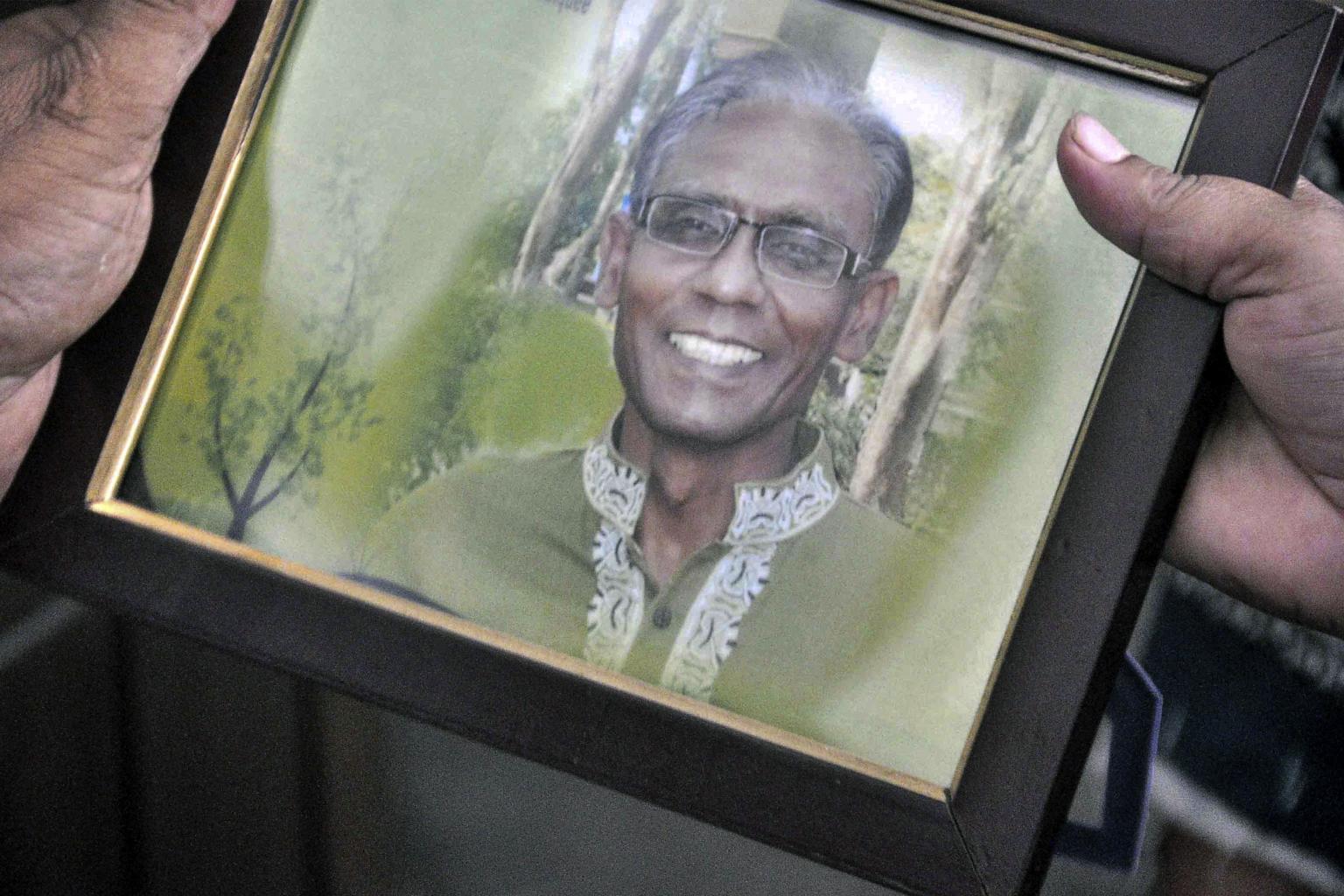 A man holds a portrait of Bangladeshi professor Rezaul Karim Siddique, who was hacked to death by unidentified attackers, in Rajshahi on April 23, 2016.