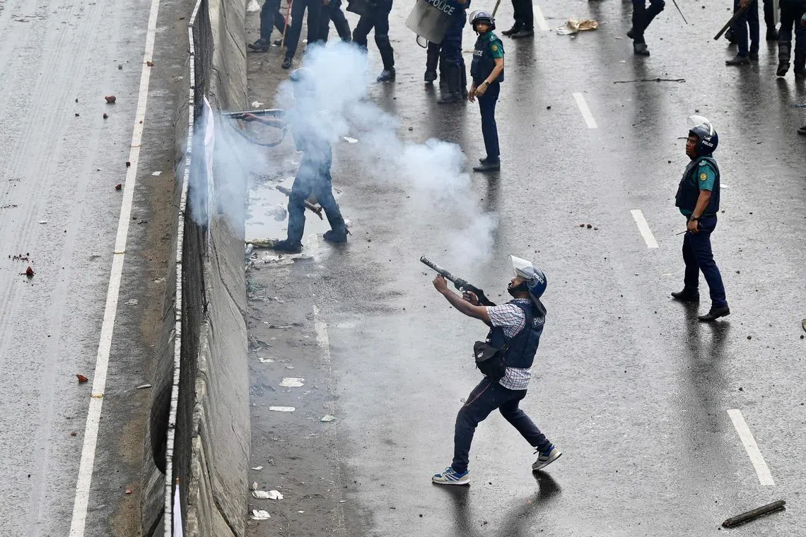 Dhaka – Bangladesh police fired rubber bullets and tear gas to disperse stone-throwing crowds blockading major roads in the capital Dhaka on Saturday in the latest protest demanding the Prime Minister’s resignation.