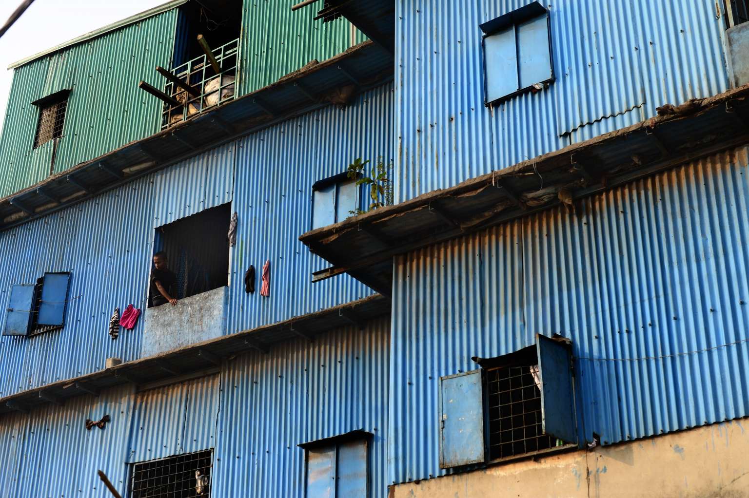A Bangladeshi youth looks on from a slum house near the Buriganga river in Dhaka.