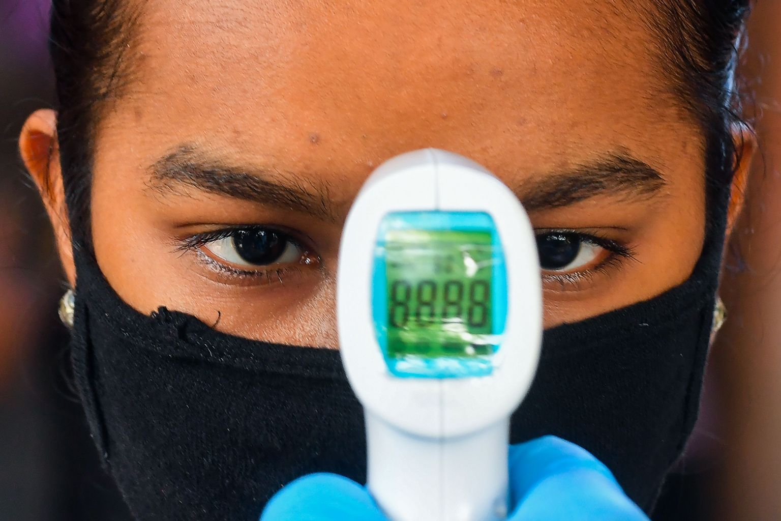 A resident gets her temperature tested at a screening centre in Mumbai on May 29, 2020.