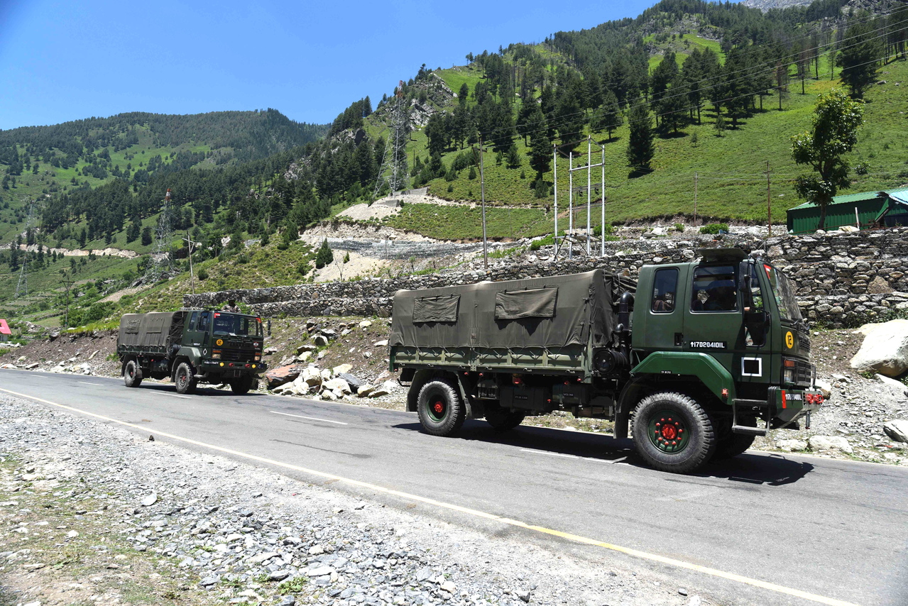 Indian army trucks travel along a highway leading to Ladakh, on June 22, 2020.