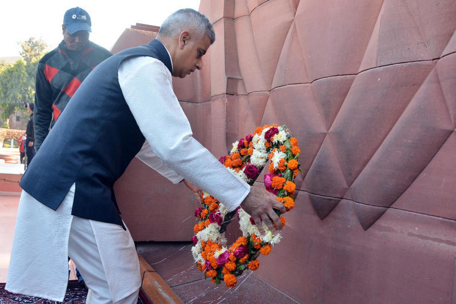 London mayor Sadiq Khan laying a wreath at the Jallianwala Bagh memorial in Amritsar, India, on Dec 6, 2017.