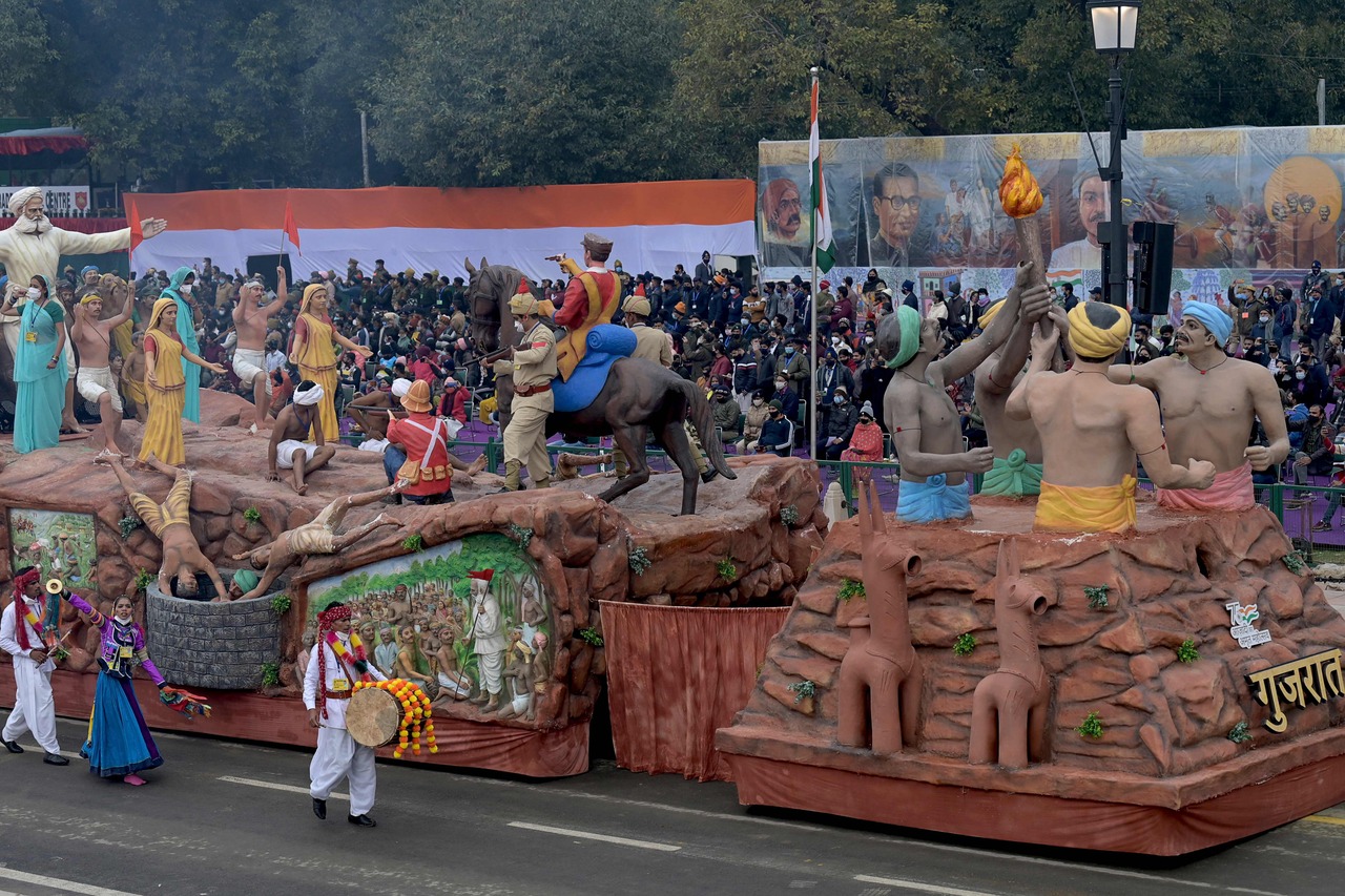 A photo from Jan 23, 2022, shows a tableau of Gujarat during a rehearsal for the Indian Republic Day parade in New Delhi.