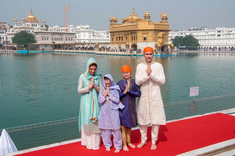 Canadian Prime Minister Justin Trudeau with his wife Sophie Gregoire Trudeau, daughter Ella-Grace and son Xavier at the Sikh Golden Temple in Amritsar on Feb 21, 2018.