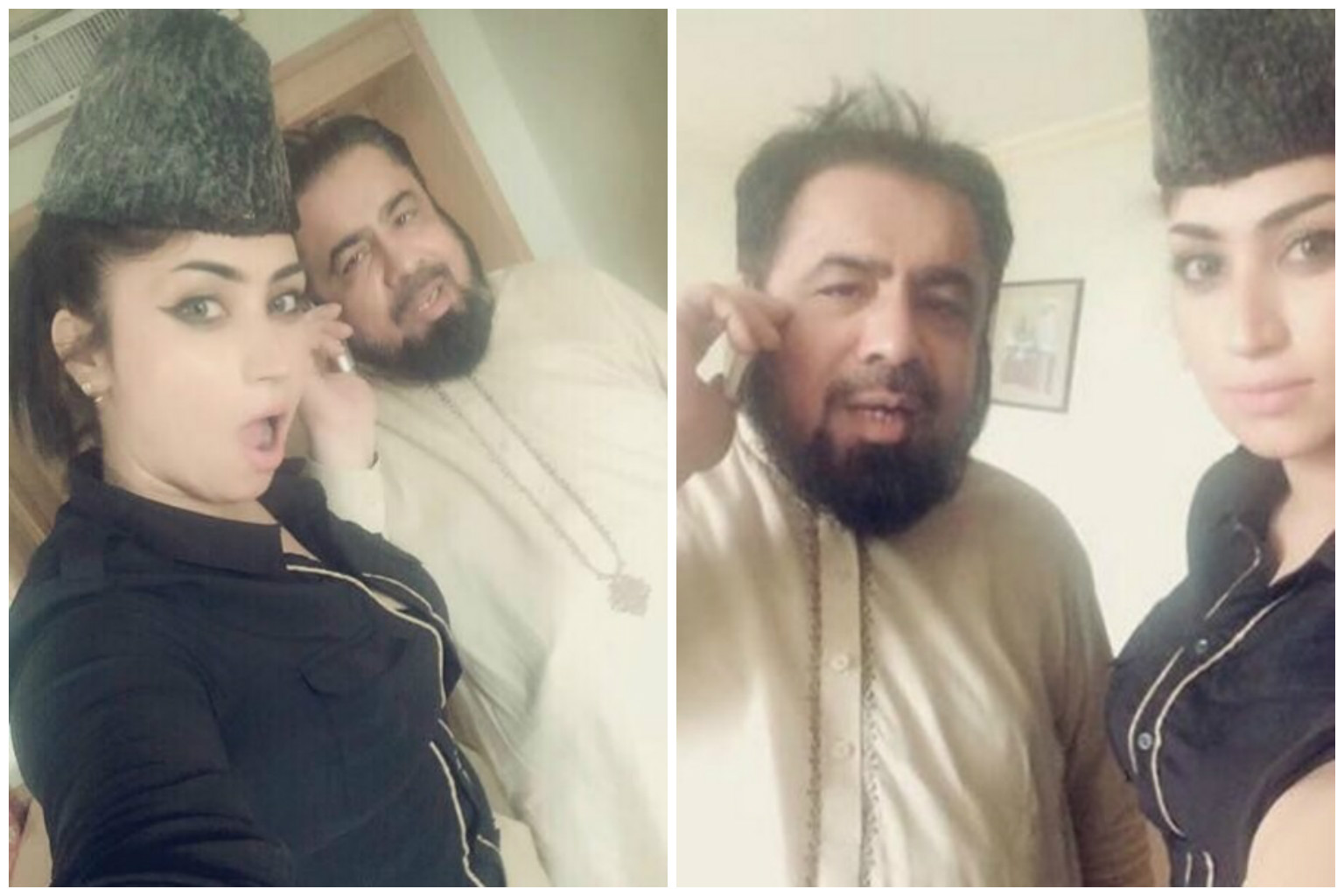 Mufti Abdul Qavi posing for selfies with social media starlet Qandeel Baloch.