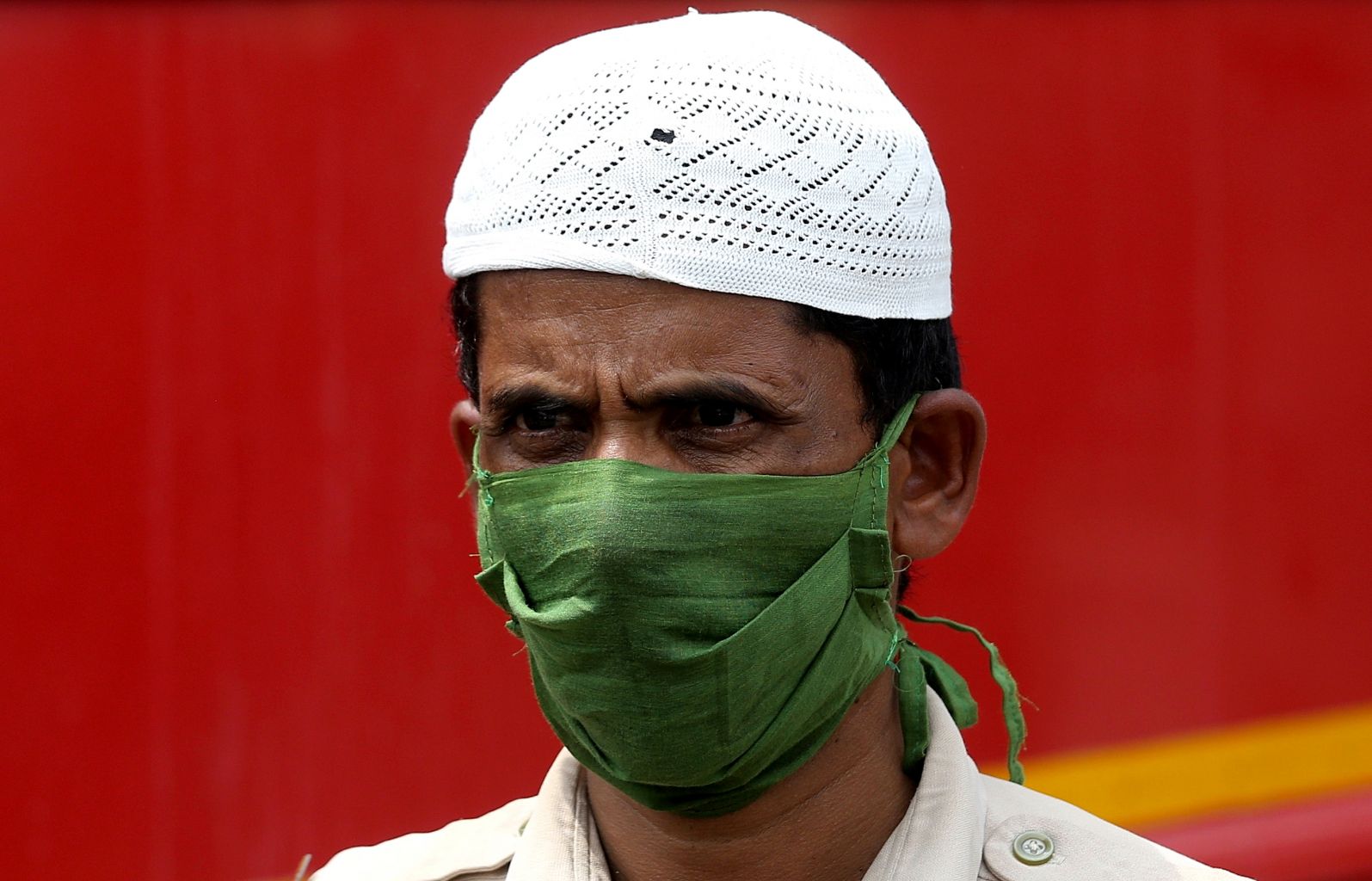 An Indian man looks on at a city bus stand in Bangalore, India, after the city eased its lockdown, May 6, 2020.