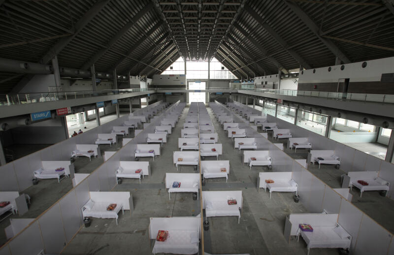 A view of beds set up at the Expo Center after it was turned into a hospital, in Lahore, Pakistan, on March 26, 2020.