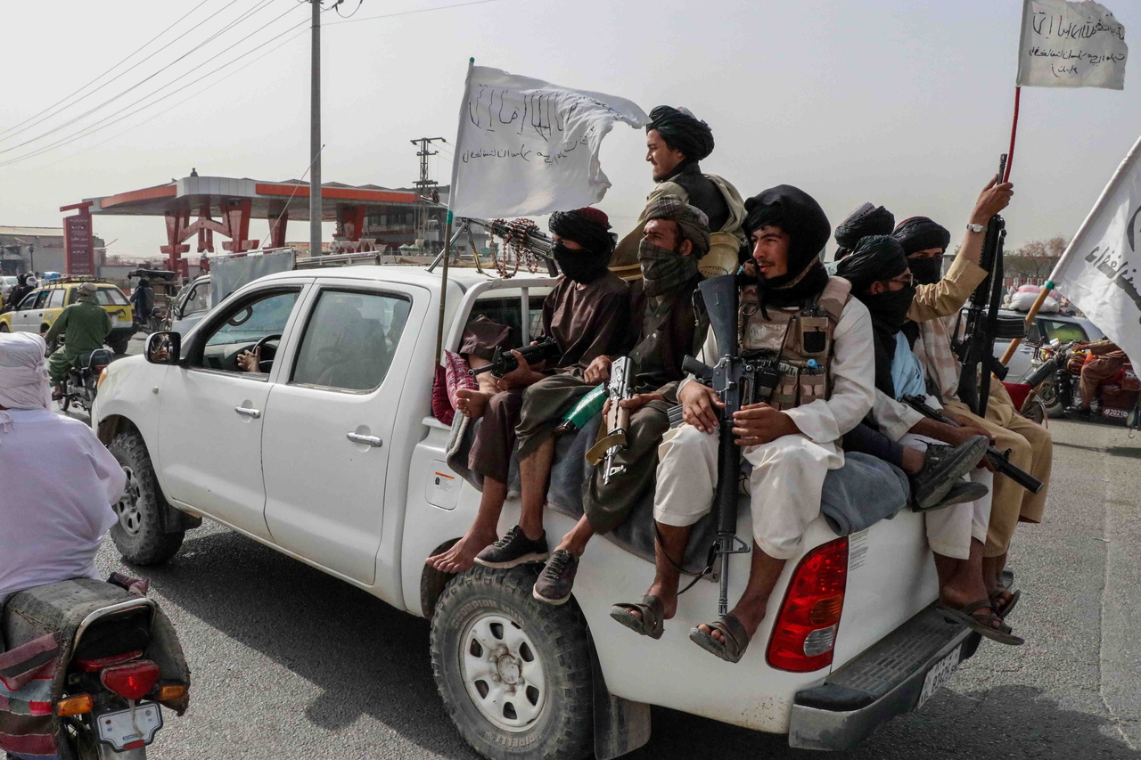 Taleban fighters patrol Kandahar in Afghanistan on Aug 17, 2021.