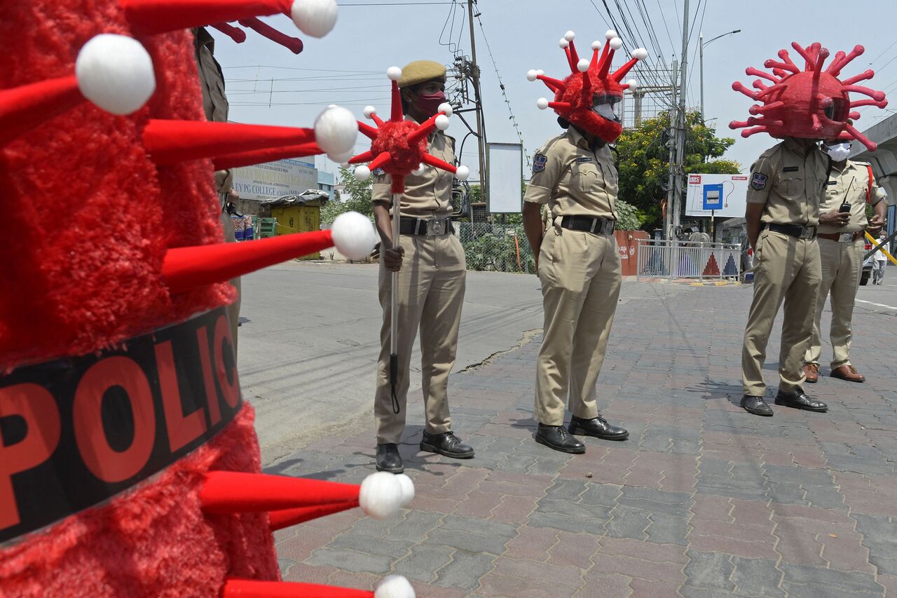 - In Chennai, constables wore silly coronavirus helmets at checkpoints.