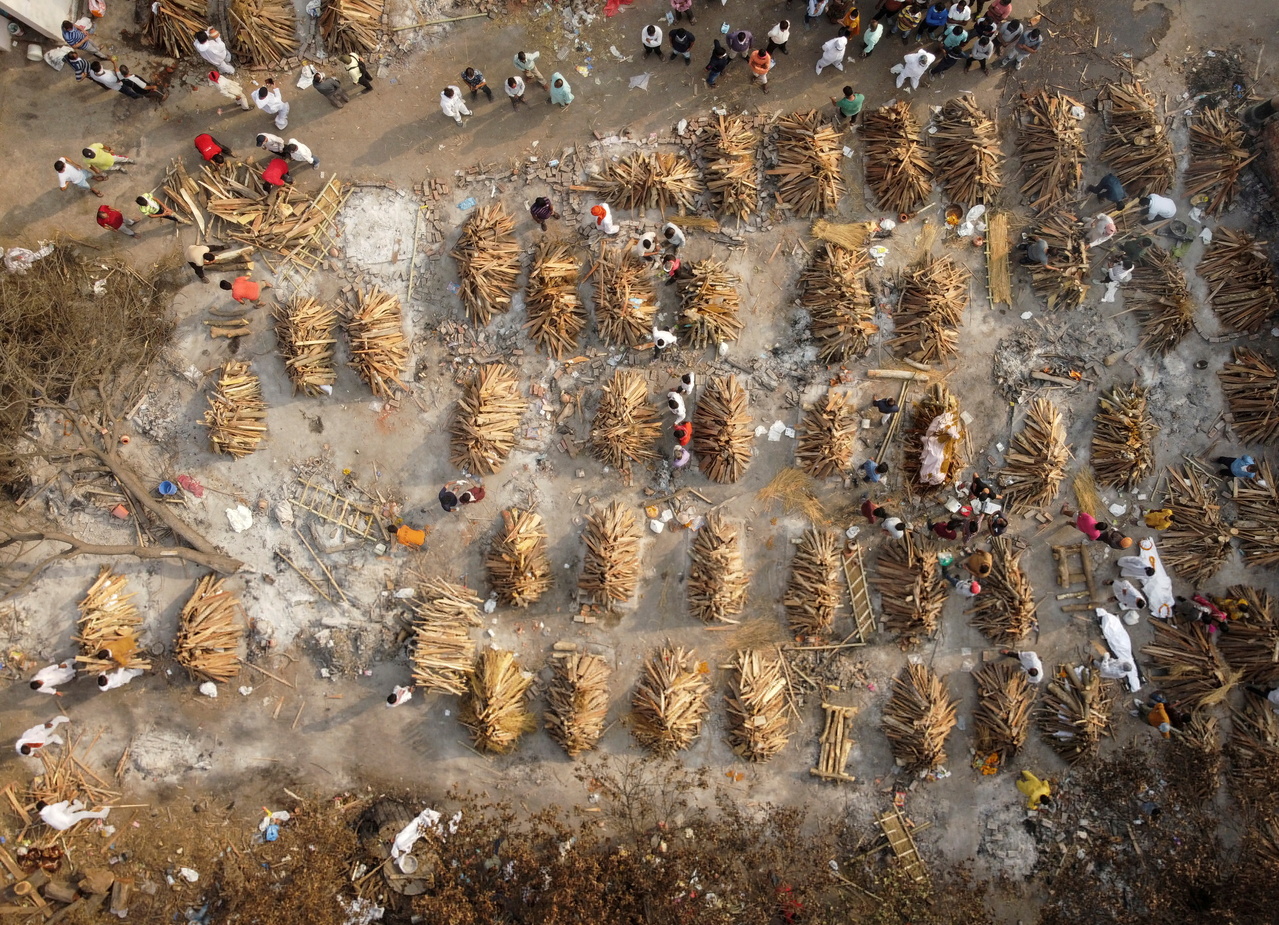 The grounds are prepared for mass cremation of coronavirus victims in New Delhi, India, on April 28, 2021.