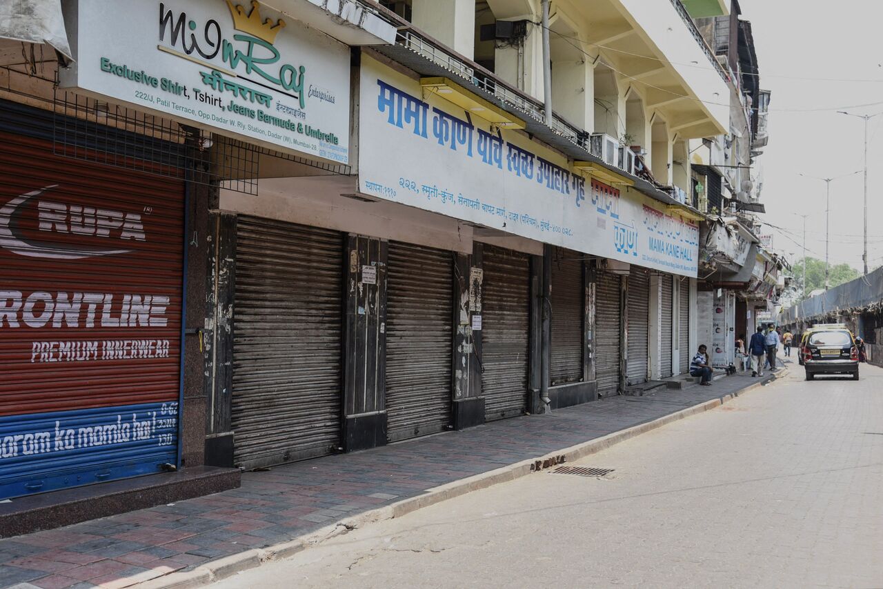 Shuttered shops are seen in Mumbai after the state government imposed a lockdown, on April 15, 2021.
