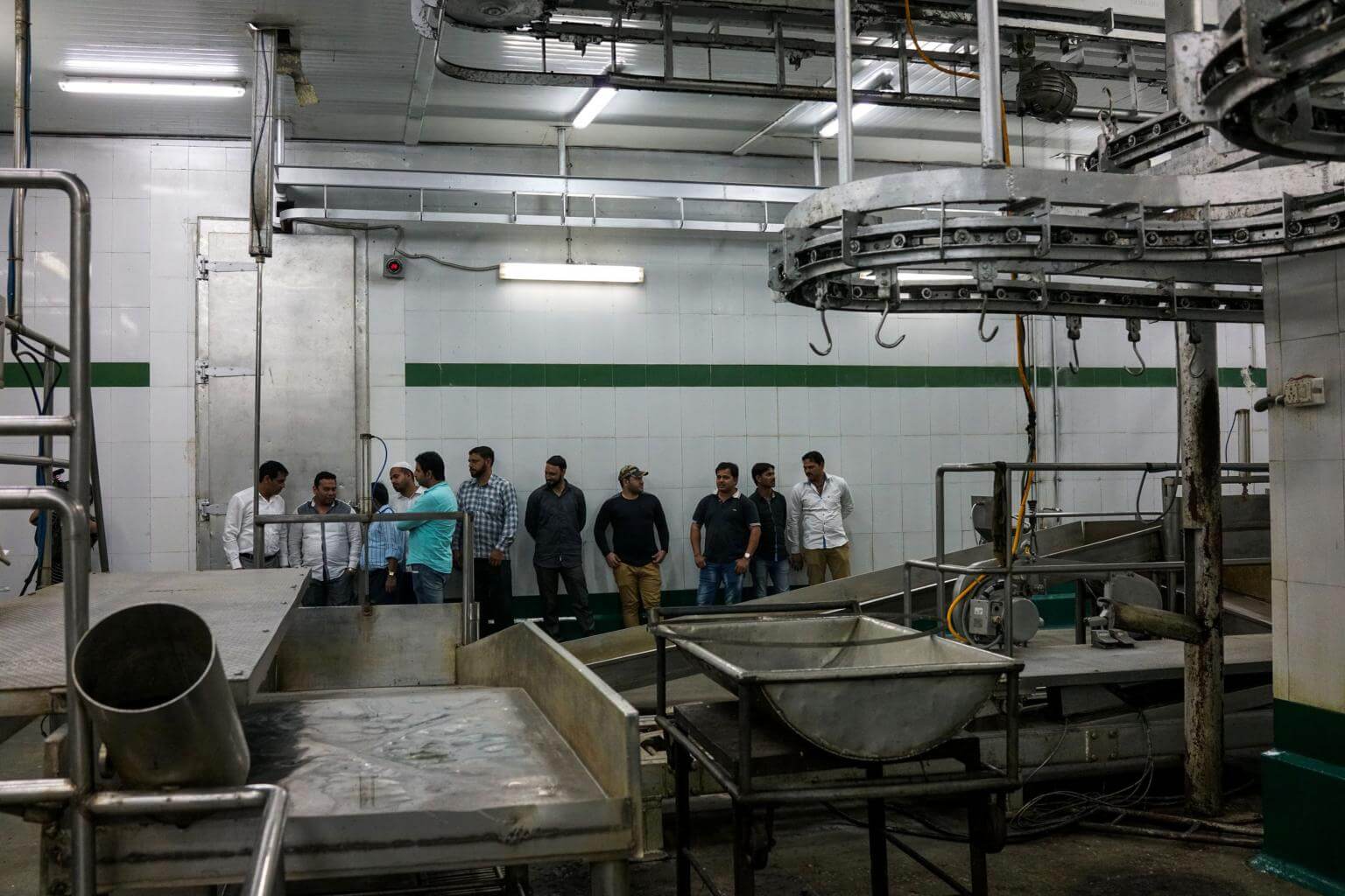 In this photograph taken on March 25, 2017, Indian workers stand inside an empty abattoir in Meerut.