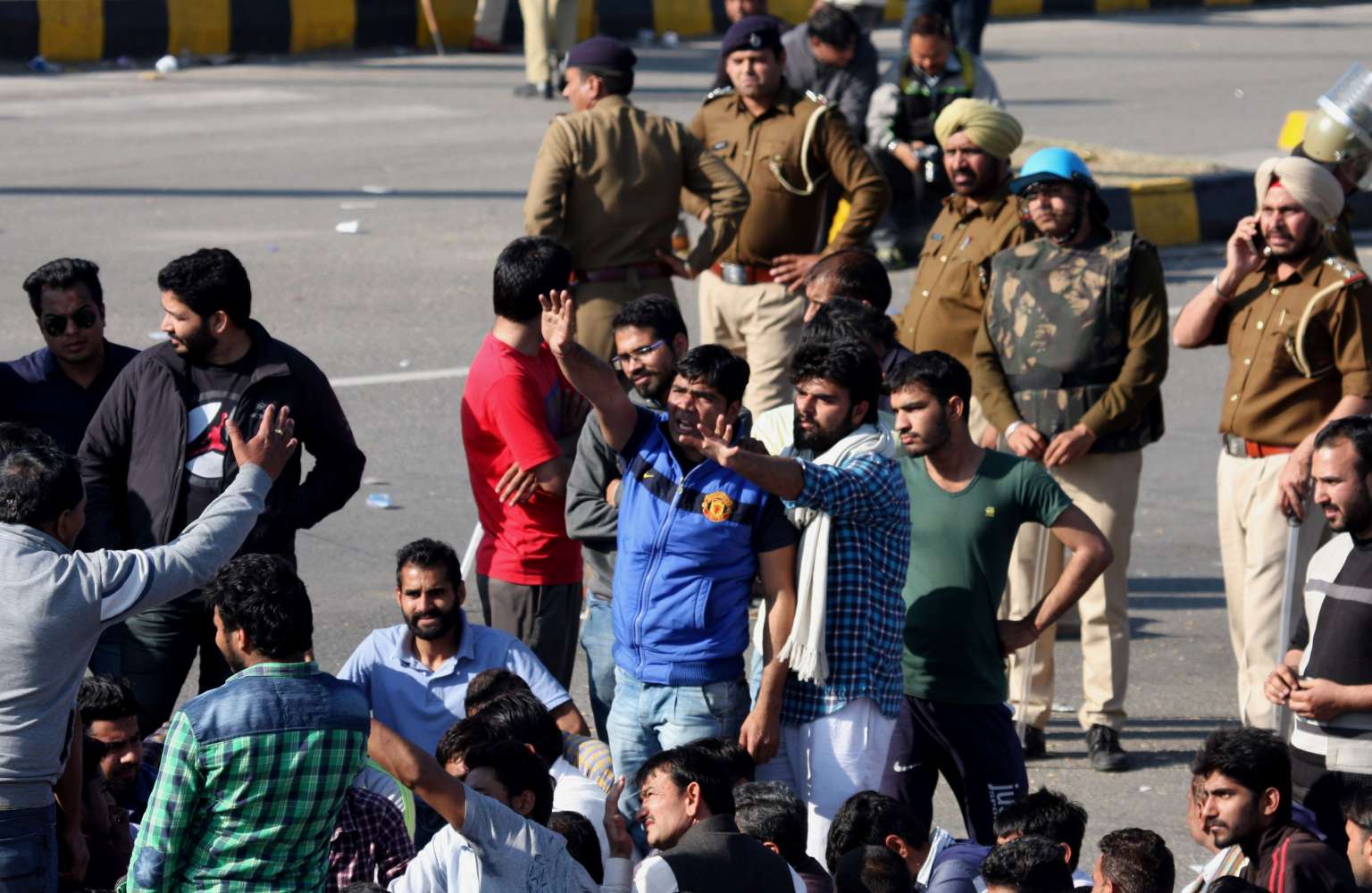 Indian residents from the Jat community blocking the Chandigarh-Shimla highway in Panchkula on Feb 21, 2016.