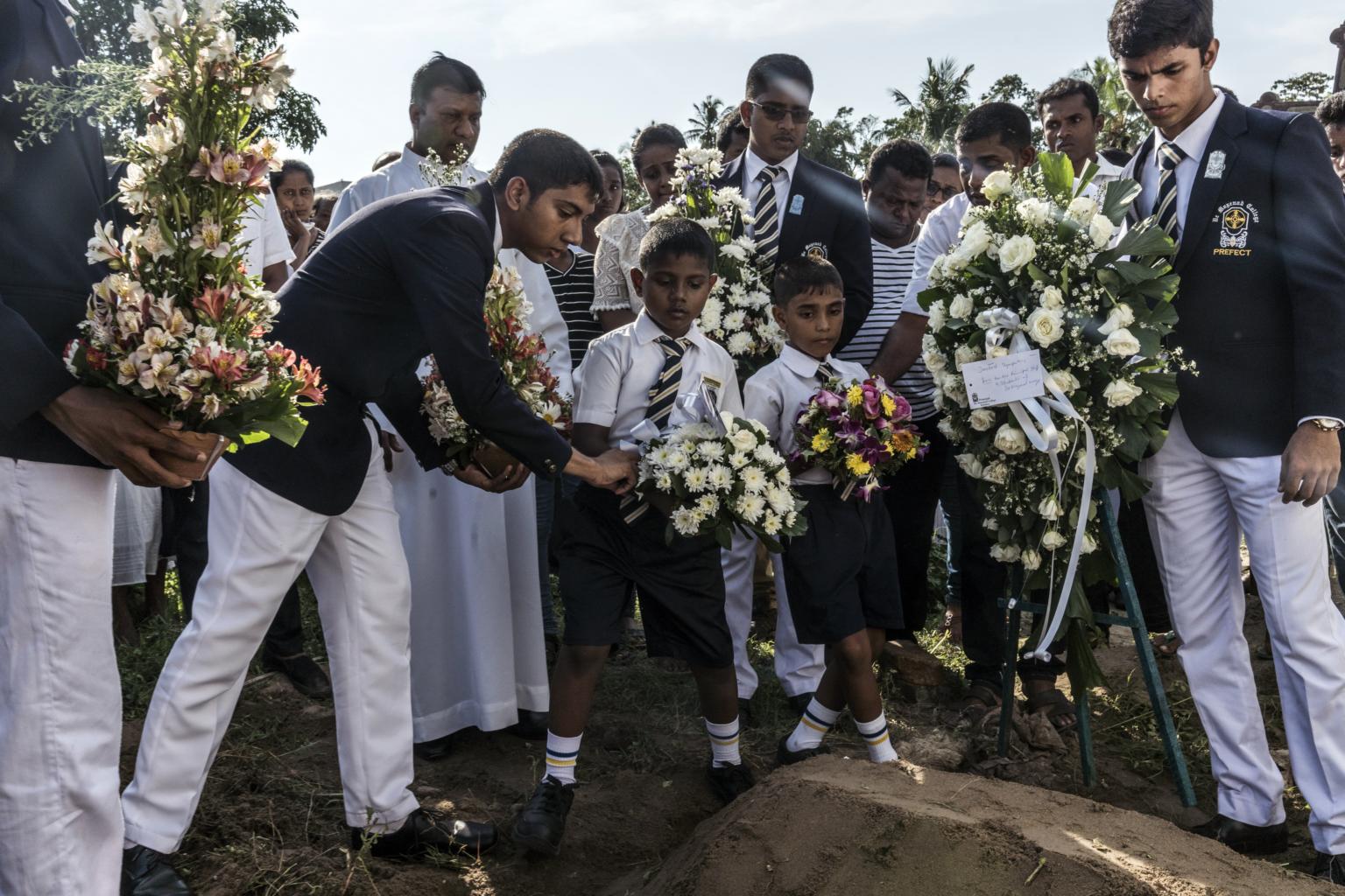 Flowers being laid at the burial site of a victim of the Easter Sunday bomb blasts at Sellakanda Catholic Cemetery in Negombo, Sri Lanka, on April 23, 2019.