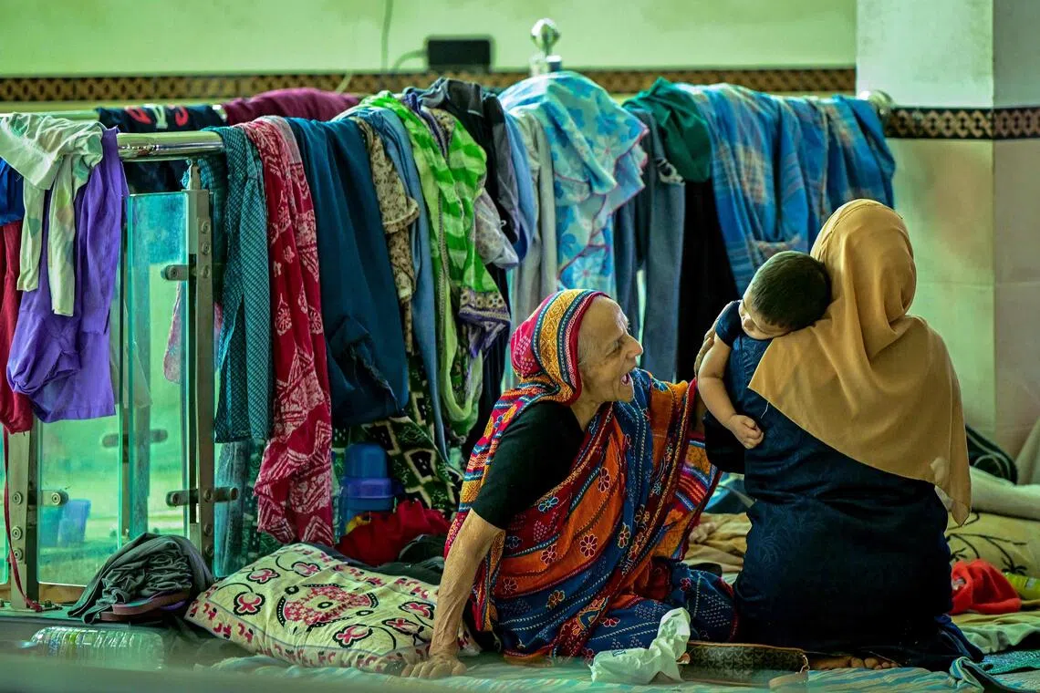 People taking refuge in a relief camp set up inside a mosque after being evacuated following rapid floods in Gampola near Sri Lanka’s Kandy district.