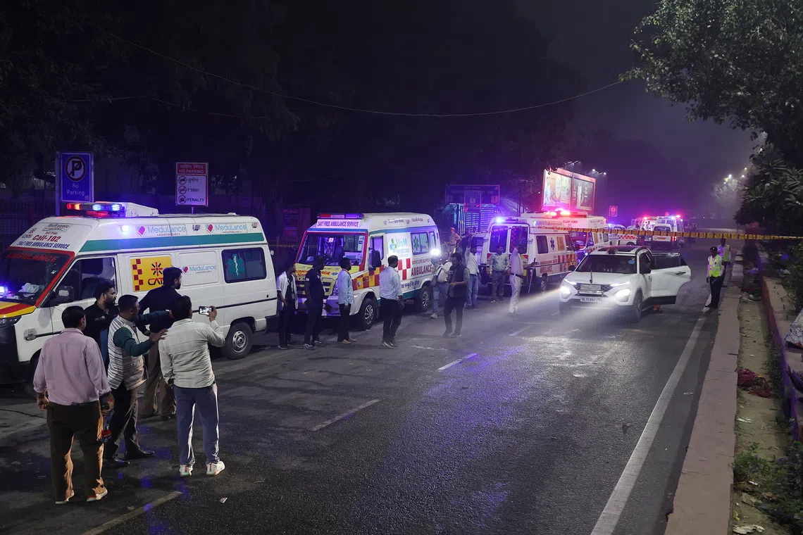 Emergency workers respond to the scene of the blast near the Red Fort in New Delhi, India, on Nov 10.