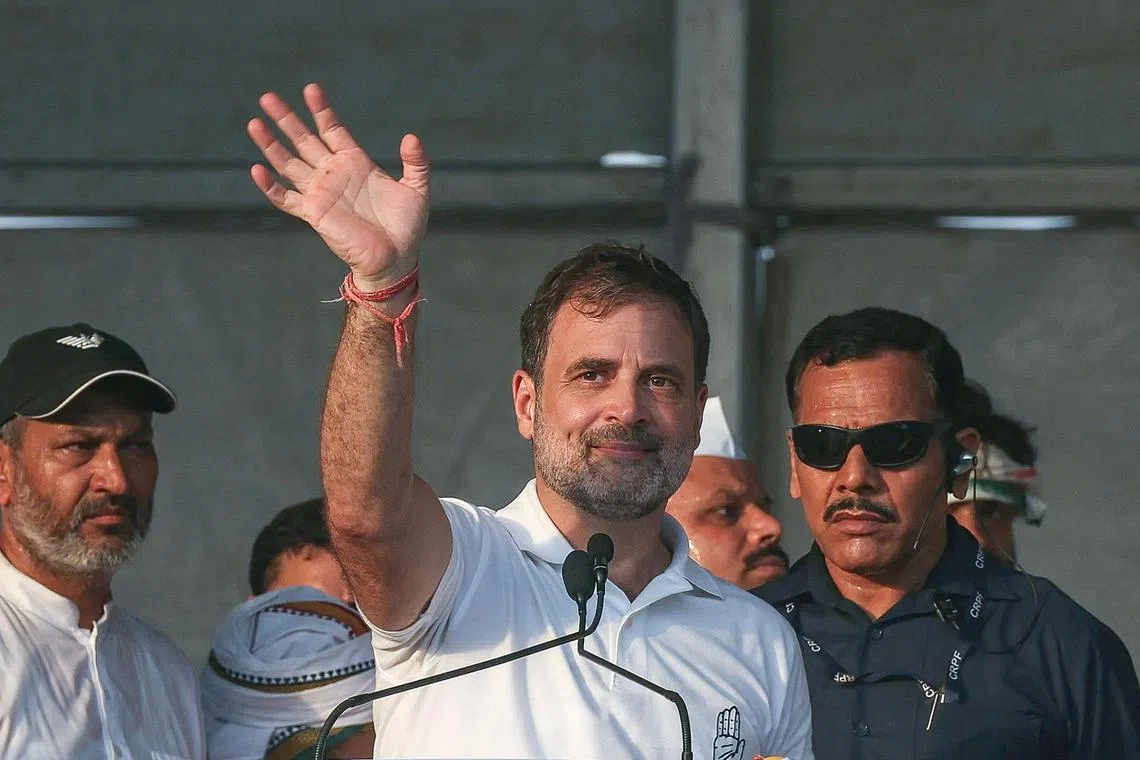 Indian National Congress leader Rahul Gandhi waving to supporters during an election rally on May 28.