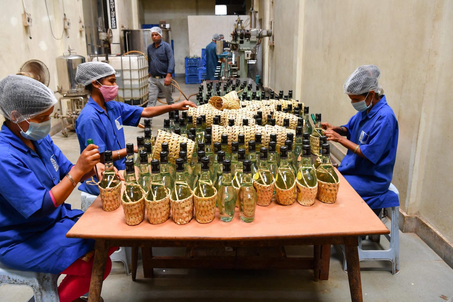 Workers packing bottles of Big Boss feni - a pungent, fermented liquor - in North Goa on March 13, 2021.