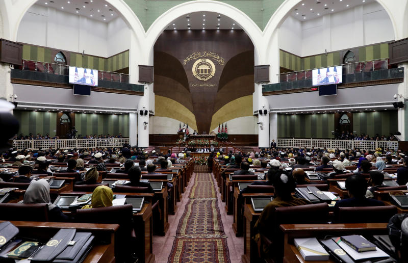 Members of the Afghan parliament attend the inauguration of the newly-elected parliament in Kabul, Afghanistan, on April 26, 2019.