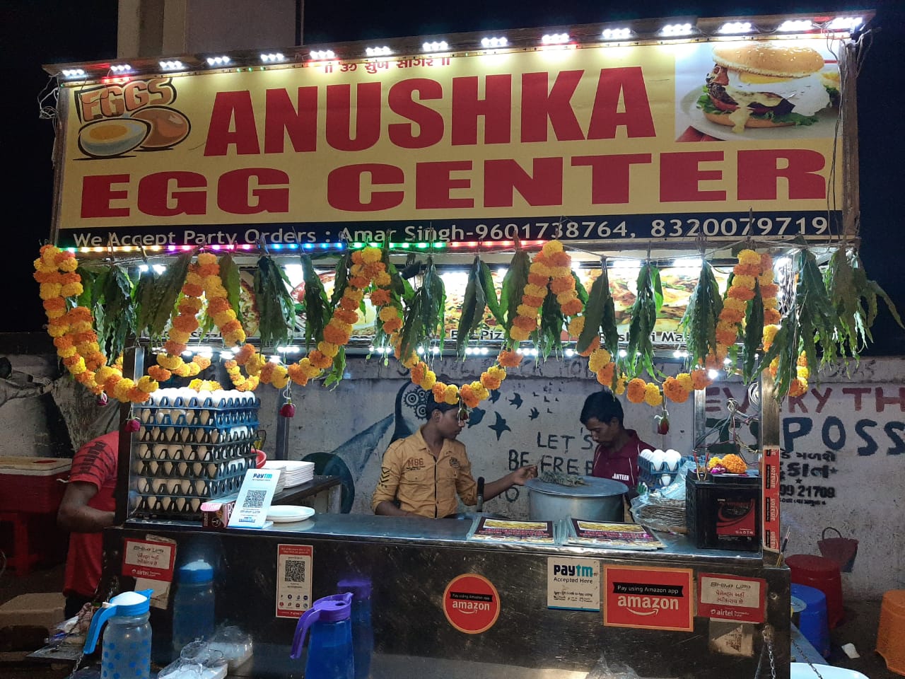 Anuskha Egg Center, a roadside stall run by Mr Amar Singh in Ahmedabad.