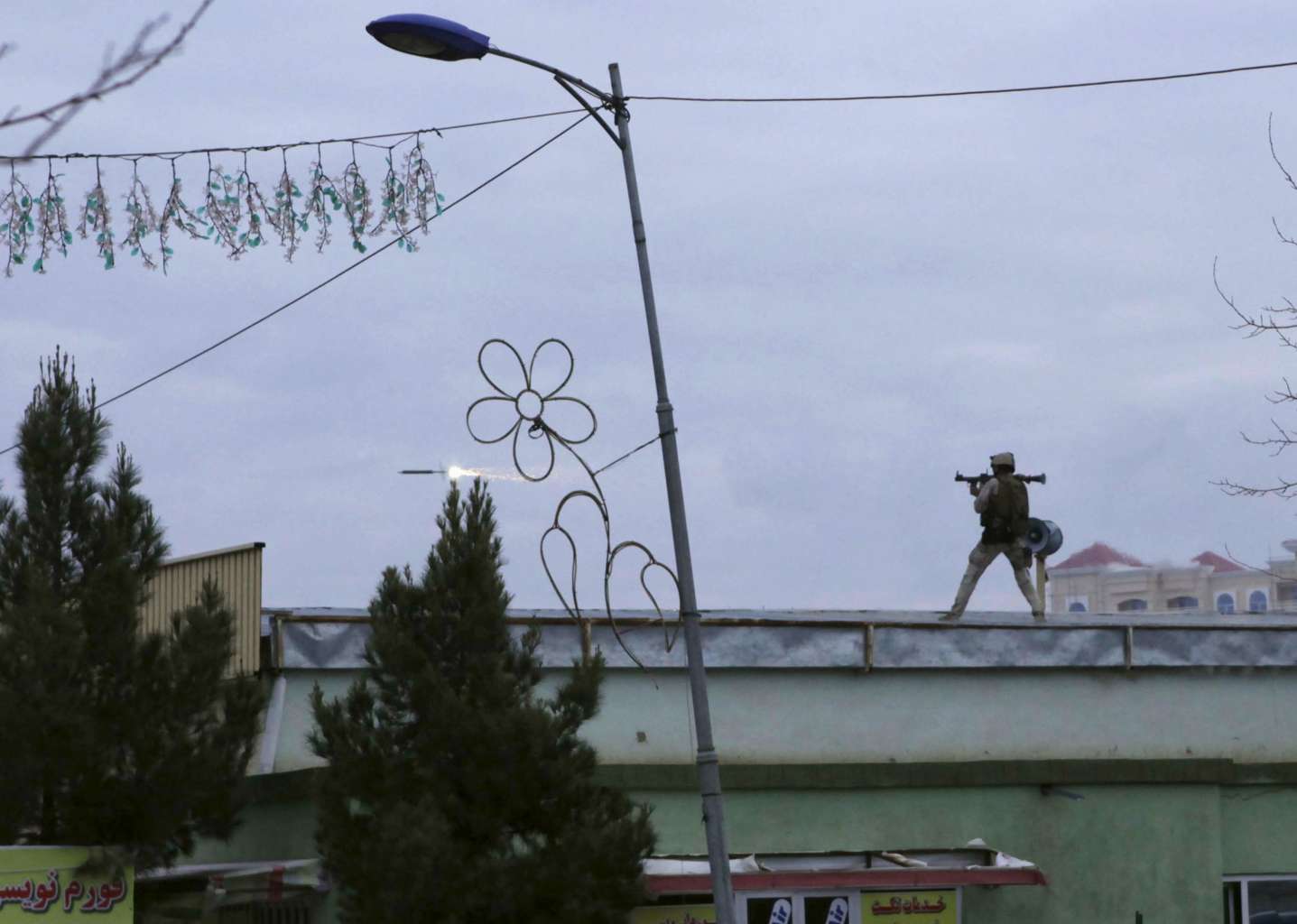 An Afghan Quick Reaction Force member fires a rocket-propelled grenade launcher near the Indian consulate in Mazar-i-Sharif on Jan 4, 2016.