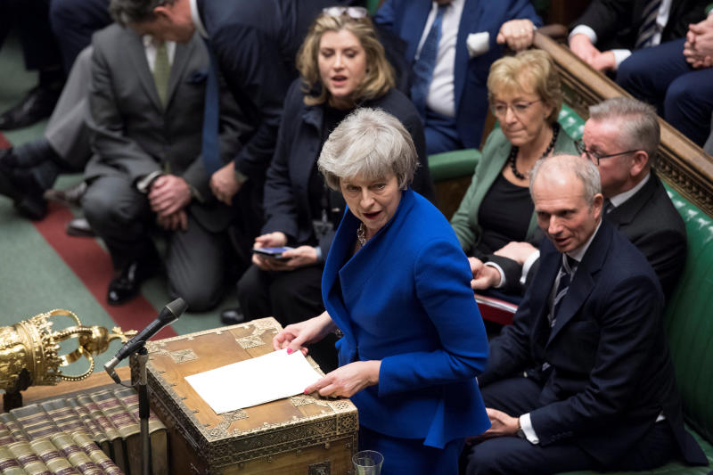British Prime Minister Theresa May speaks during a confidence vote debate after Parliament rejected her Brexit deal, in London, Britain on Jan 16, 2019.
