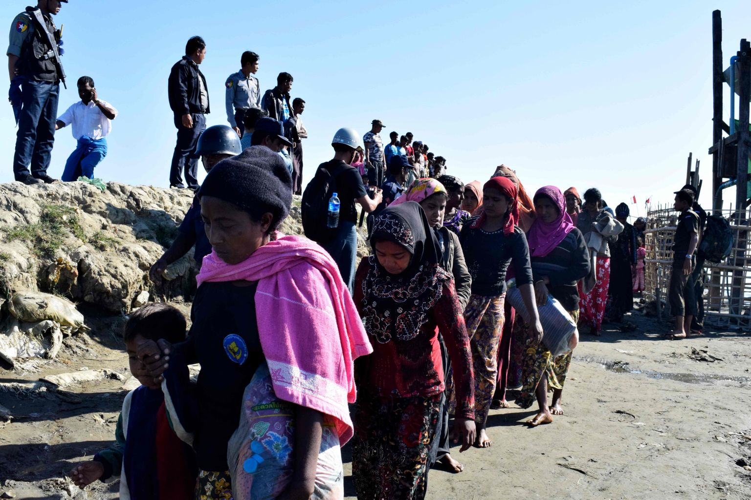 A file photo taken on Nov 30, 2018, shows Myanmar Navy personnel escorting Rohingya Muslims back to their camp in Sittwe, Rakhine state.
