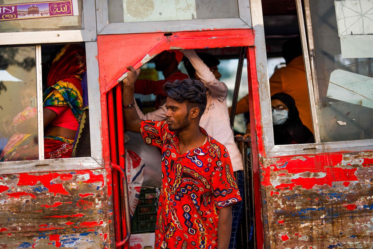 Passengers commute in a public bus in Dhaka on Jan 4, 2022.