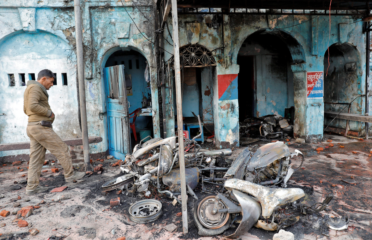 A photo taken on Dec 19, 2019, shows a police post that was set on fire by demonstrators during a protest against a new citizenship law, in Lucknow, India.