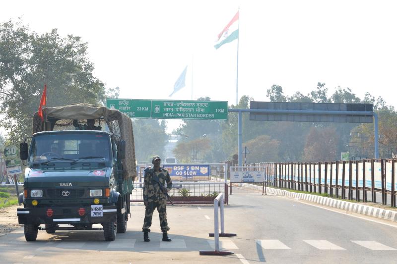 Indian Border Security Force personnel stand guard at the India-Pakistan Wagah Border post on Feb 27, 2019.