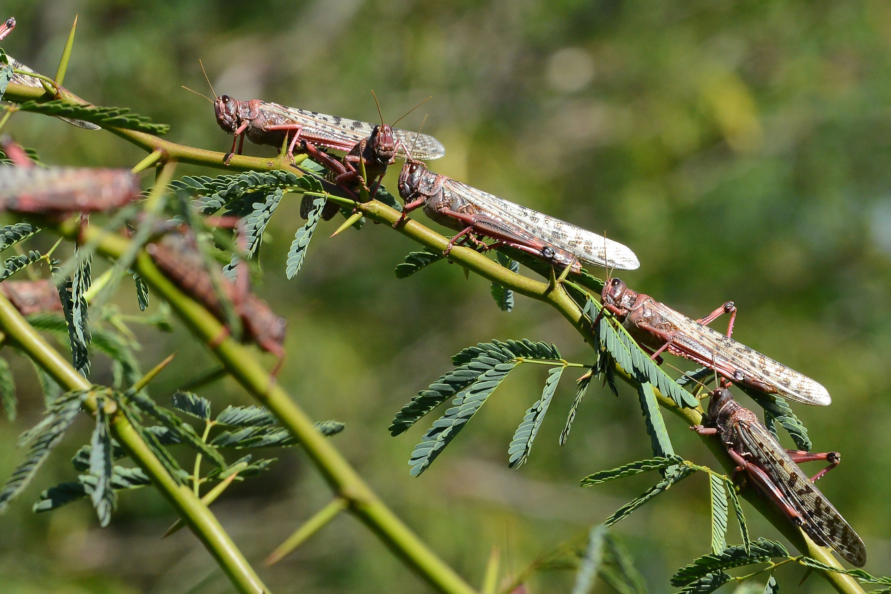 Locust swarms can fly up to 150km a day with the wind, and adult insects can consume roughly their own weight in fresh food per day.