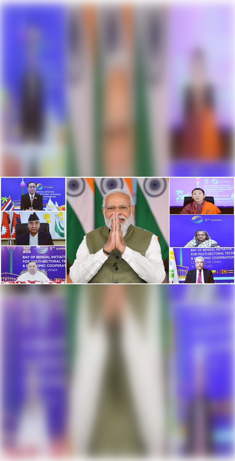 Indian Prime Minister Narendra Modi (centre) with his counterparts at the 5th Bimstec Summit in New Delhi on March 30, 2022.