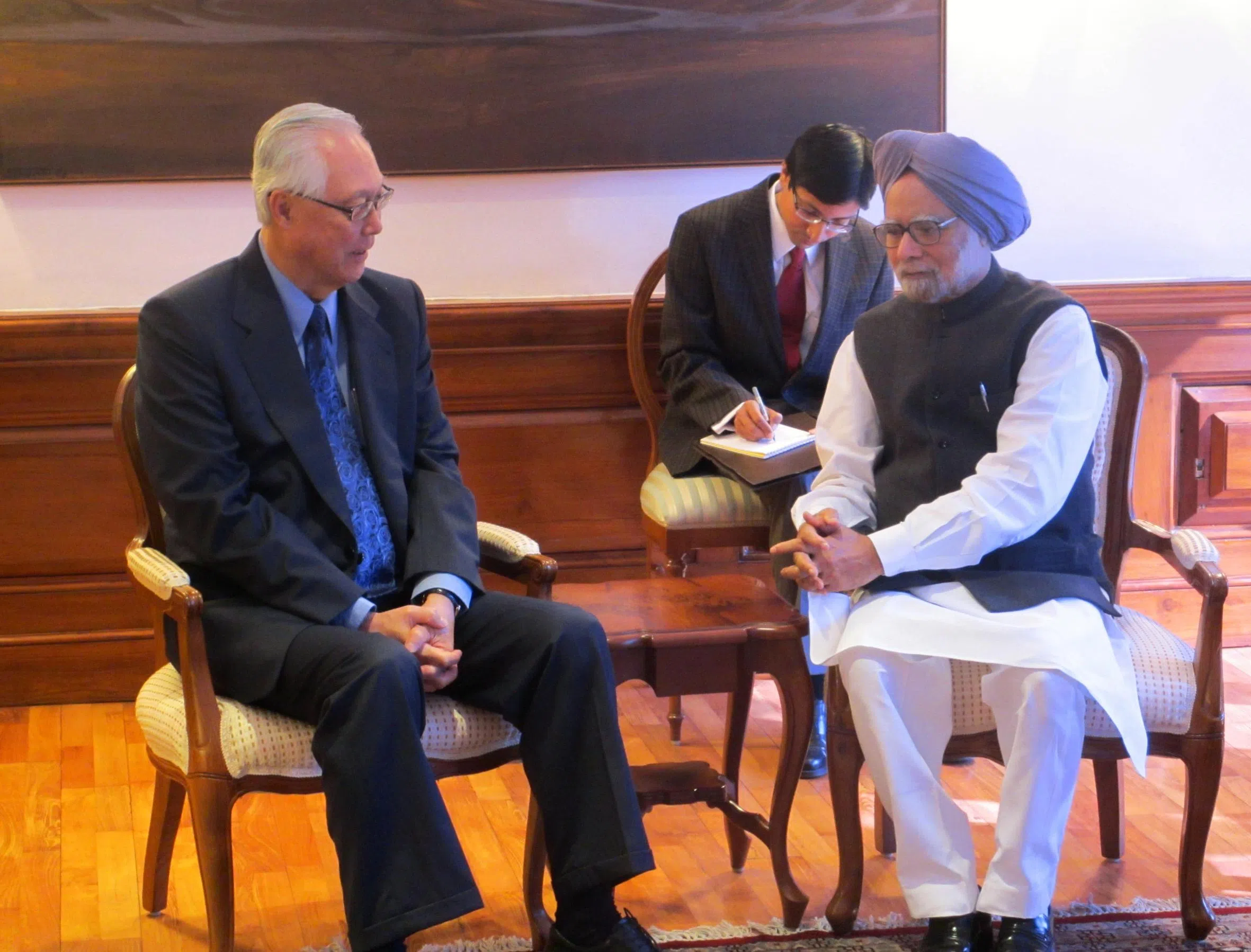 A 2013 photo shows Mr Goh meeting Dr Singh during a four-day visit to India.