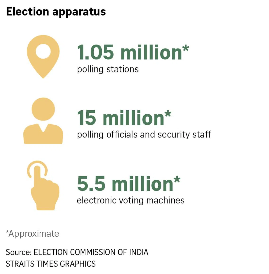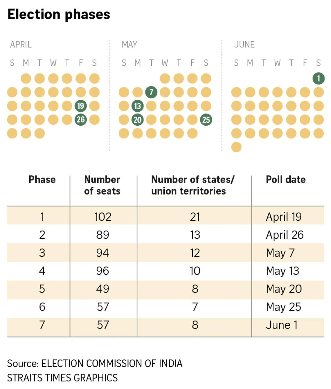 The elections are spread out over 44 days to facilitate the deployment of security forces, who must prevent polling-related violence or rigging. The results will be out on June 4.