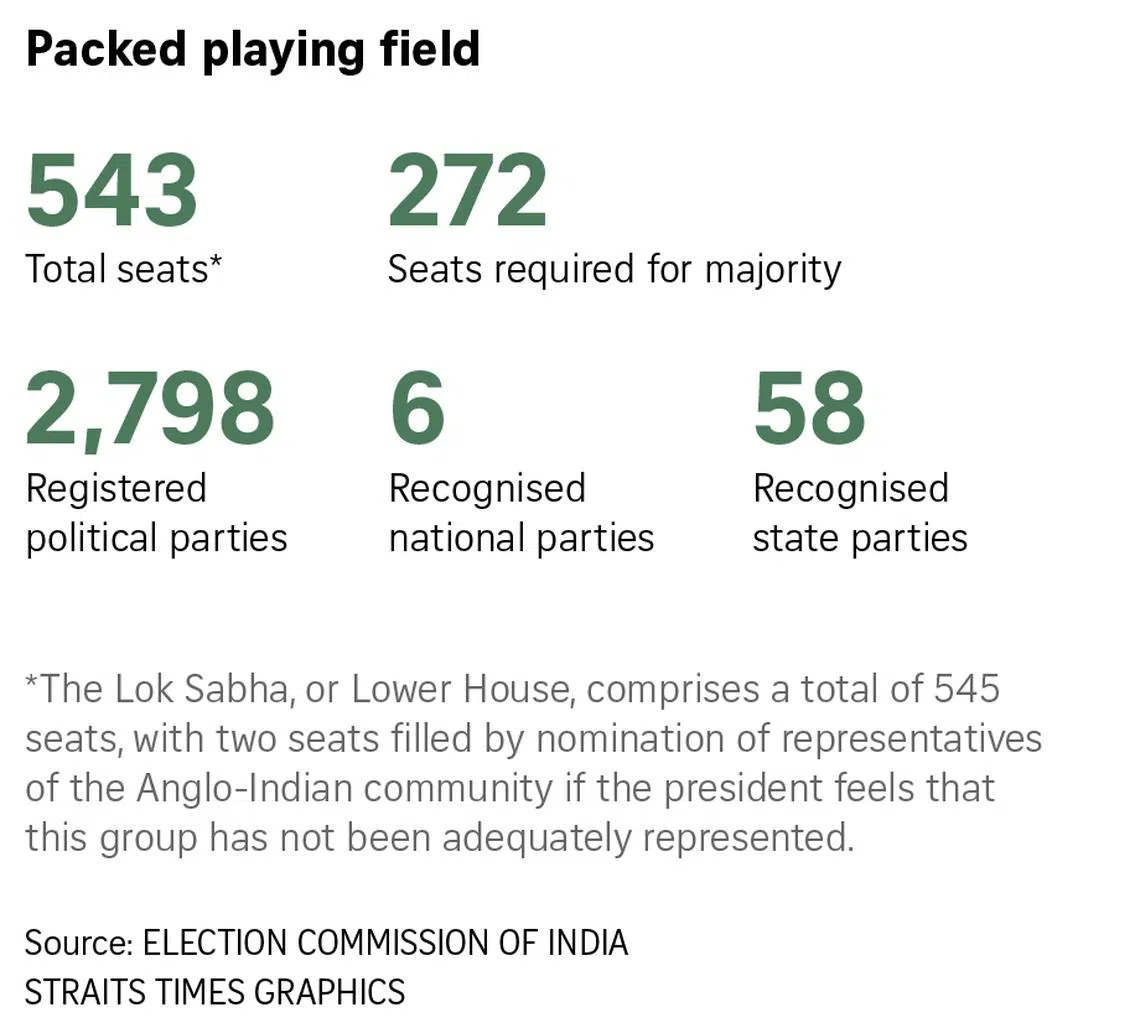 In India’s parliamentary system, voters in each constituency will choose from a list of multiple candidates representing different national and regional parties.
