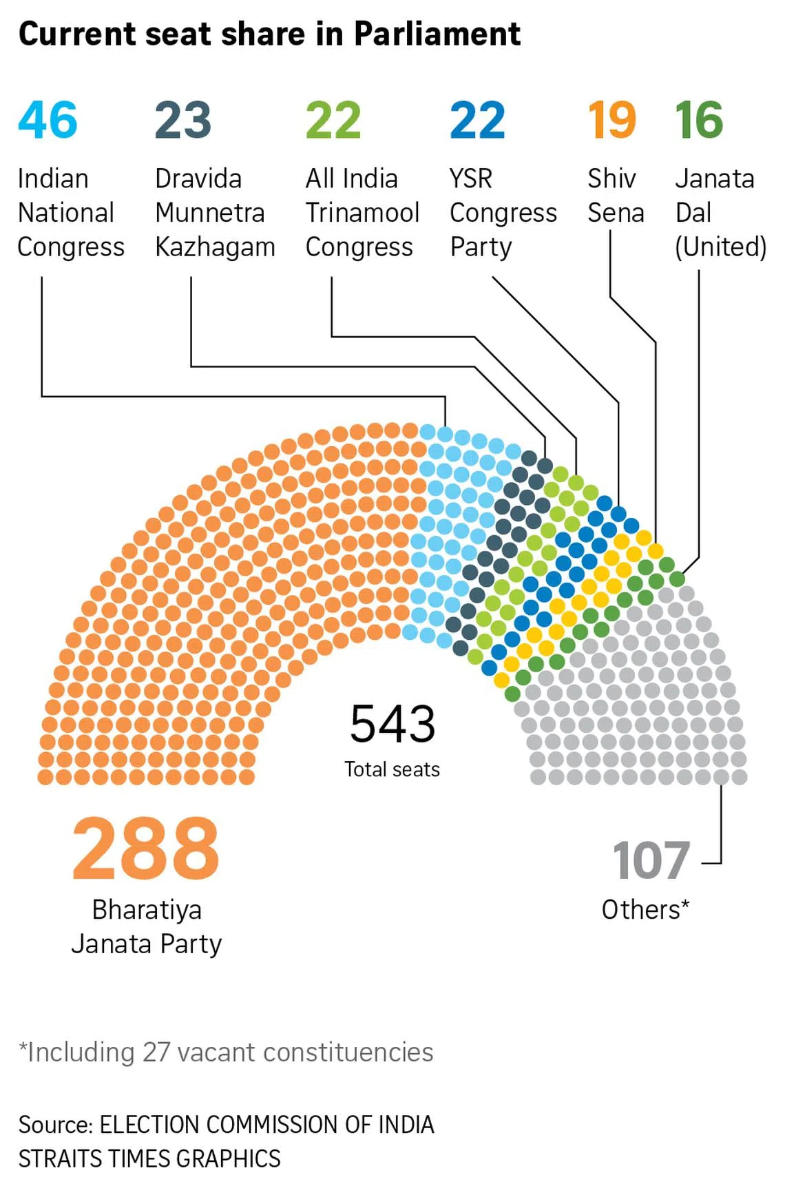 Voting will take place for 543 elected seats in the Lower House of Parliament, the Lok Sabha.